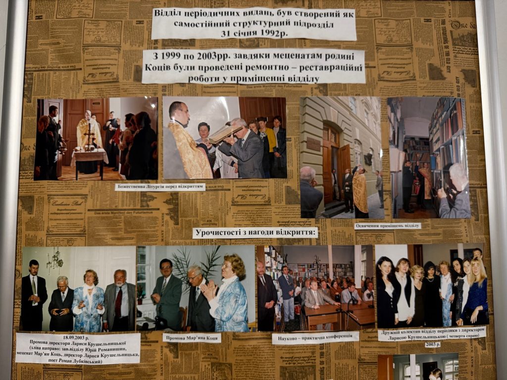 Також однією з умов було: хто надасть найбільшу суму — тим і буде названий відділ. Тому сьогодні він має назву «Відділ періодичних видань імені Мар’яна та Іванни Коців».