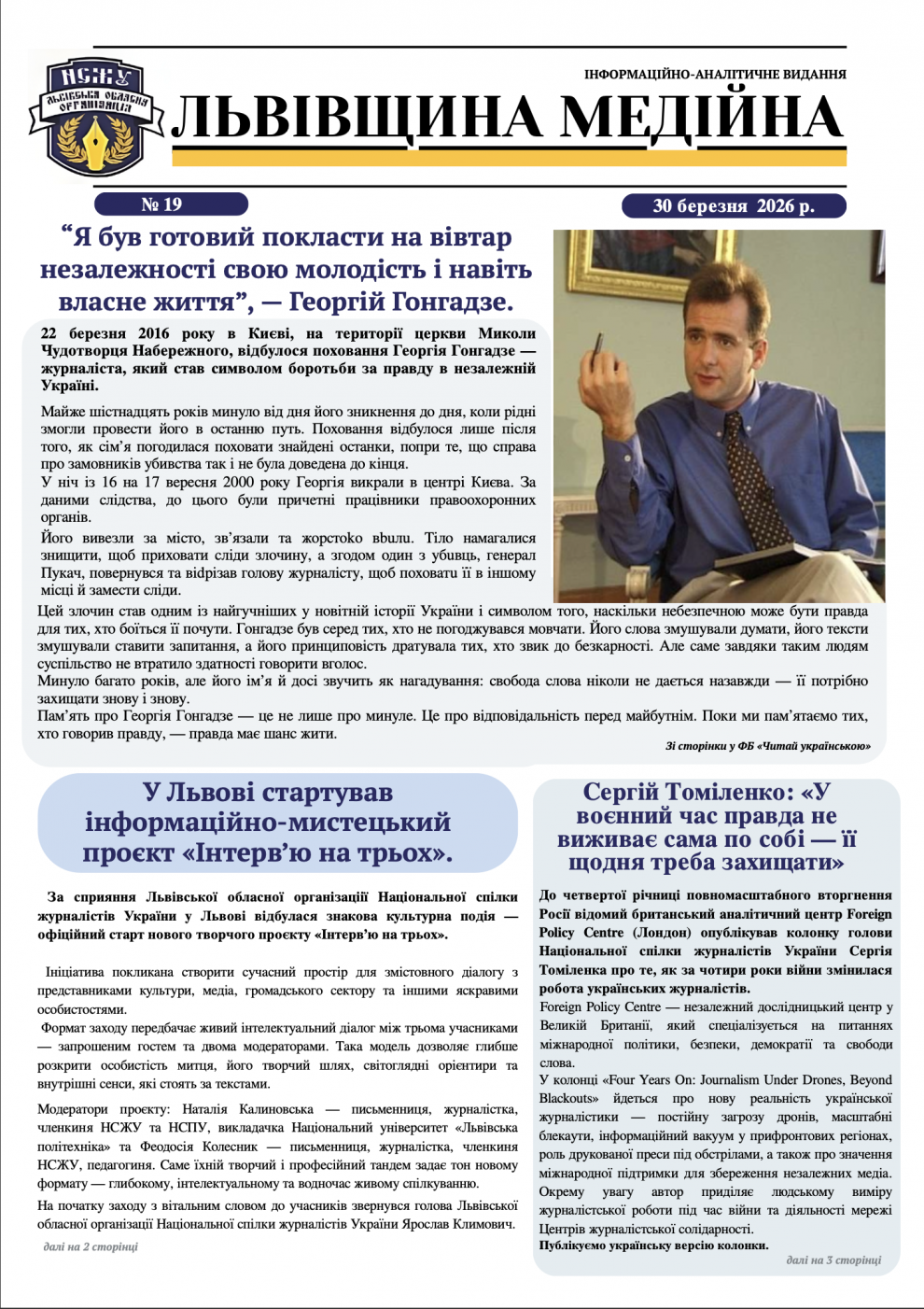 Наголос “Я був готовий покласти на вівтар незалежності свою молодість і навіть власне життя”, — Георгій Гонгадзе. 2 тижні тому