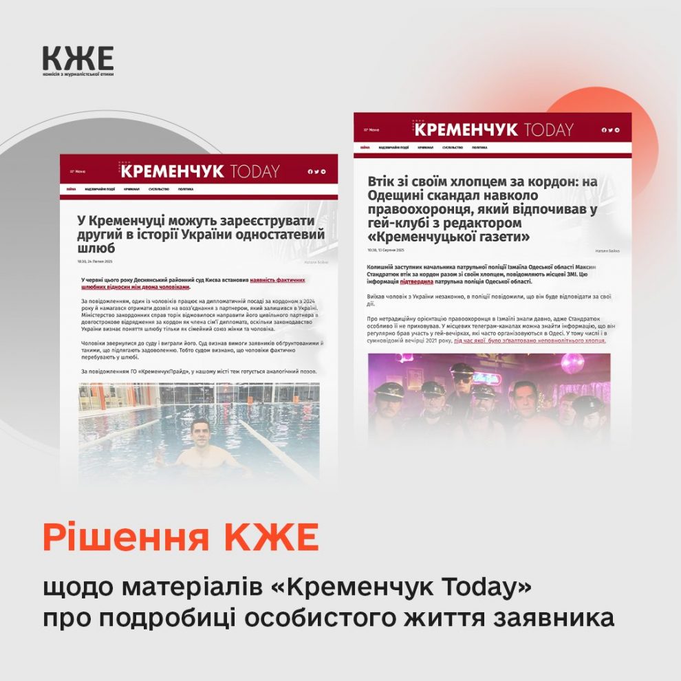Видання Кременчук Today отримало публічний осуд від КЖЕ через дискримінаційні матеріали.